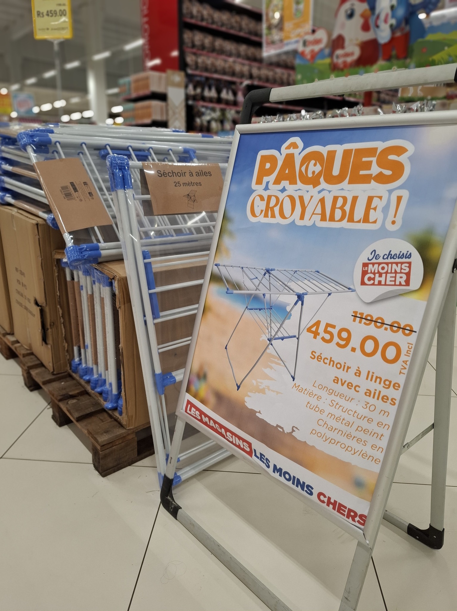 May be an image of text that says "JUSQU'AU 06 AVRIL 2026 PÂQUES CROYABLE! Je choisis MOINS CHER 1190.00 459.00 MIN ler Séchoir à linge avec ailes Longueur 30 m Matière: Structure en tube métal peint Charnières en polypropylène LES MAGASINS LES ...
