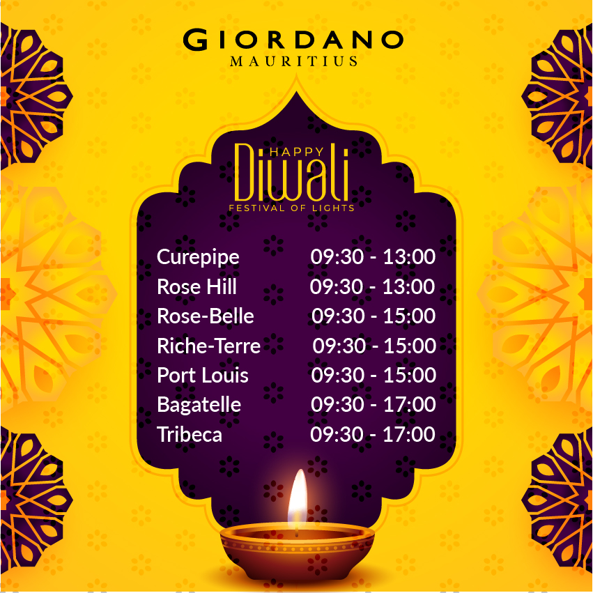 May be an image of text that says "GIORDANO MAURITIUS Wishes you a pious Thaipoosam Cavadee"
