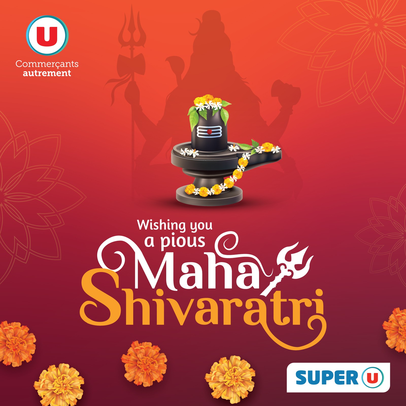May be an image of text that says "Commerçants autrement 茶勝 そ5文 Wishing you ลท์ล a pious Shivaratri SUPER"